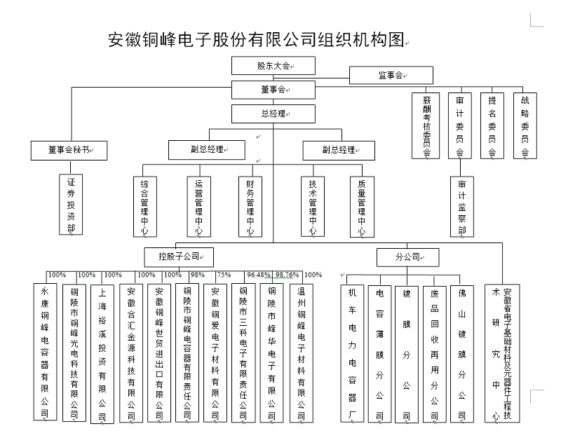 安徽銅峰電子股份有限公司組織機構(gòu)圖
