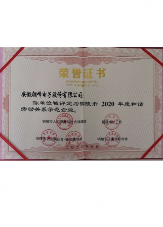 銅陵市和諧勞動(dòng)關(guān)系示范企業(yè)