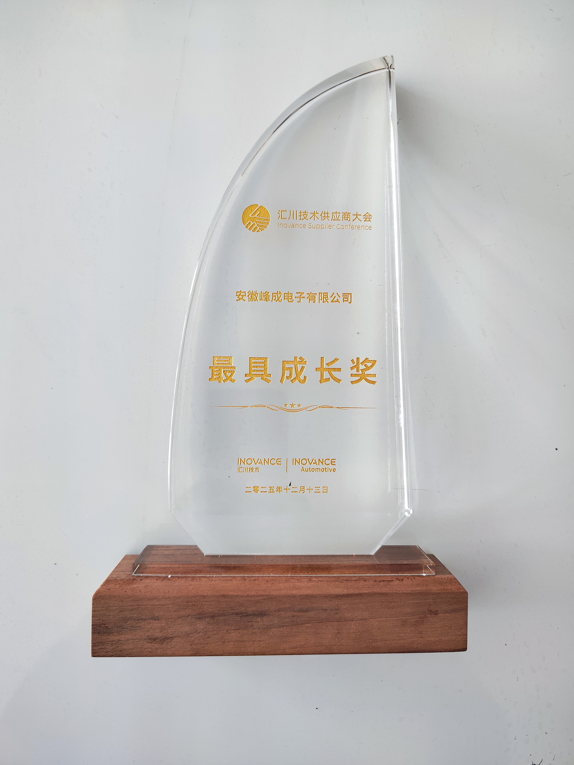 匯川聯(lián)合動(dòng)力是專注新能源汽車電驅(qū)與電源系統(tǒng)研發(fā)的國內(nèi)龍頭企業(yè)之一?!白罹叱砷L(zhǎng)獎(jiǎng)”旨在表彰在合作過程中展現(xiàn)出強(qiáng)勁發(fā)展勢(shì)頭、持續(xù)創(chuàng)新能力與卓越服務(wù)水平的合作伙伴。此次獲獎(jiǎng),不僅是匯川技術(shù)對(duì)雙方過往合作成果的肯定,更是對(duì)峰成公司綜合實(shí)力與成長(zhǎng)潛力的高度認(rèn)可。面向未來,峰成公司將繼續(xù)堅(jiān)持創(chuàng)新驅(qū)動(dòng),加強(qiáng)新品研發(fā),提升品質(zhì)服務(wù),推進(jìn)雙方互利合作再上新臺(tái)階,助力新能源汽車電子產(chǎn)業(yè)的高質(zhì)量發(fā)展。